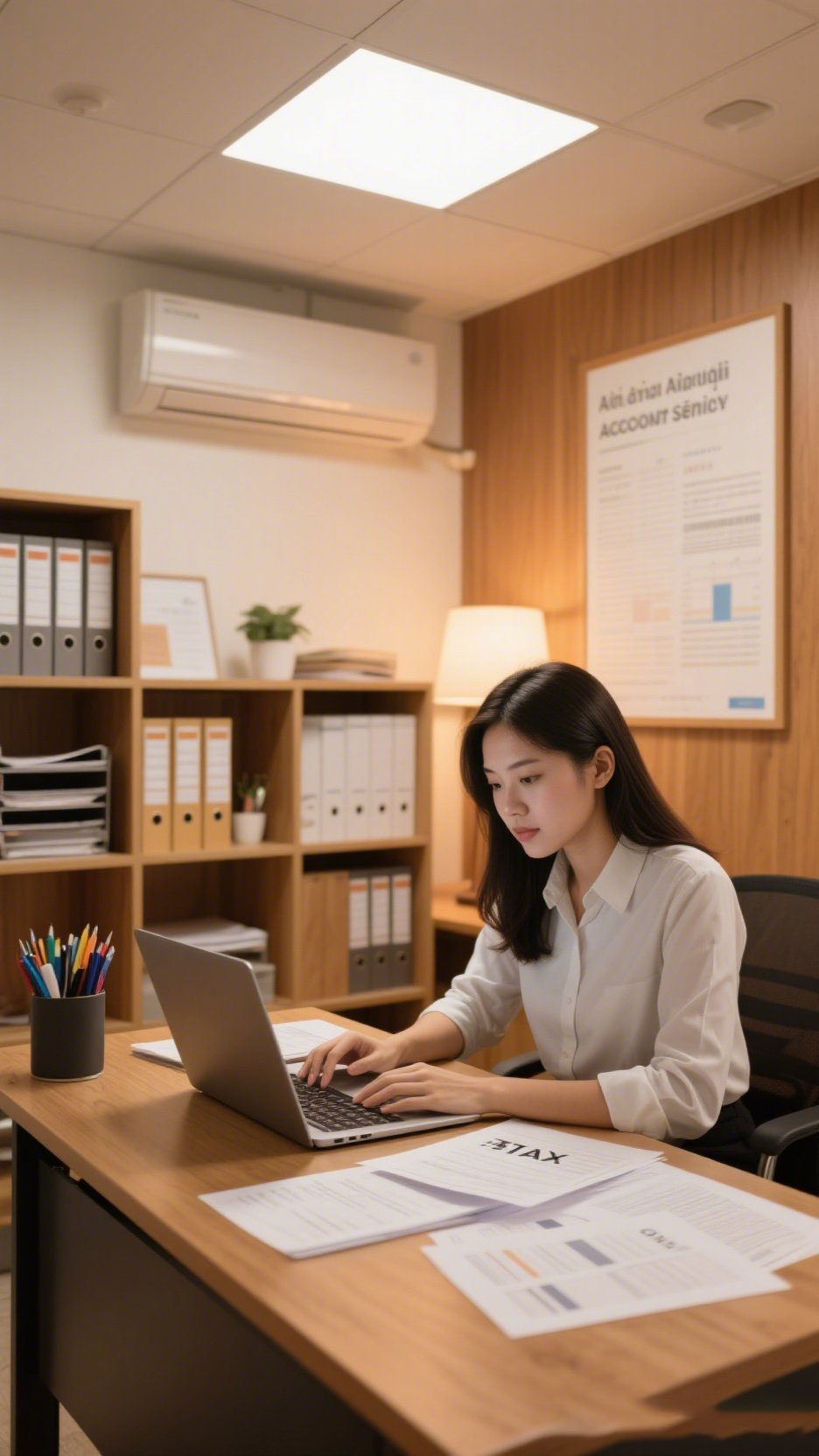 Quản lý sổ sách, lập báo cáo tài chính, theo dõi thu – chi, kiểm tra hóa đơn.